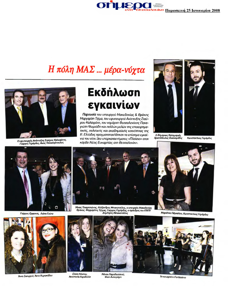 Εκδήλωση εγκαινίων.Σήμερα Από Λιάνα Γούτα · 25 Ιανουαρίου 2008 Παρουσία του υπουργού Μακεδονίας & Θράκης Μαργαρίτη Τζίμα, του υφηπουργού Ανάπτυξης Σταύρου Καλαφάτη,… Δείτε περισσότερα